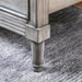 DAPHNE Gray Queen Bed, 87 3/4"L X 65 1/4"W X 58"H, 127.05lbs. In addition to stunning carved details and felt-lined top drawers, this transitional style bedroom collection comes with built-in headboard shelves and convenient touch lights. An extra drawer hides within the nightstand and dresser while the chest o ffers extra functionality with its lift-top jewelry storage, complete with mirror. Sleek silver tone handles sparkle against the weathered gray finish for a beautifully contemporary design that will beautify any bedroom. Features: Transitional Style Padded Fabric Headboard Built-in Touch Light in Headboard Hidden Drawer in Night Stand and Dresser Double Drawer Fronts Felt-lined Top Drawers Solid Wood, Wood Veneer, Others Gray Finish