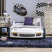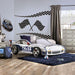 Twin Bed Height: 25.00" Width: 45.50" Length: 90.00" Hero on patrol! Your child will race off into dreamland adventures with this turbo squad car bed design. It’s flashy and sturdy, complete with metal supports, working lights and a shiny finish.