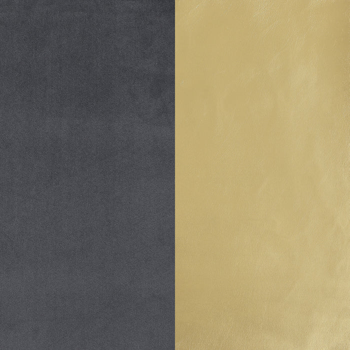 Encourage sophisticated aesthetics with the refined silhouette and gorgeous gold trim featured on a modern sofa. Upholstered in dark gray, it boasts a gently curved kidney silhouette that creates a rich, inviting ambiance in your living room. Its sloping arms and curved front are trimmed in gold, with a matching round accent pillow that brings exceptional style and dimension. The outer surface adds diamond quilted texturing, while vertical channel tufting adds texture to the inner back and arms. A pair of accent pillows in matching dark gray complete the look, offering easy comfort for lounging and entertaining.