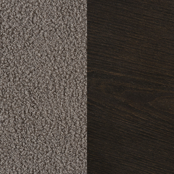 This modern rocking chair blends cozy comfort with sophisticated design, making it an ideal addition to any contemporary home. The plush boucle fabric upholstery wraps the seat and backrest, providing a soft and inviting surface. The walnut-finished bentwood frame adds warmth and elegance, while the curved wooden rockers and sturdy metal legs ensure smooth, stable motion. Whether used in a living room, nursery, or reading nook, this chair's sleek, modern silhouette complements a variety of interiors. Combining high-quality materials and a striking design, this rocker offers both style and comfort for your favorite spaces.
