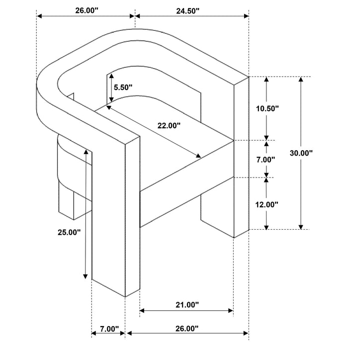 Enveloped entirely in the embrace of plush bouclé, this chair redefines the art of relaxation with its all-fabric design. The seamless transition from the cushioned seat to the curved arms, all robed in the same soft fabric, creates a cocoon of comfort. This chair's silhouette is a gentle wave of tranquility, its form an ode to the curves found in nature. The uninterrupted bouclé upholstery invites a serene tactile experience, transforming the chair into a modern sanctuary. It's a haven of softness, a singular statement of elegance and ease.
