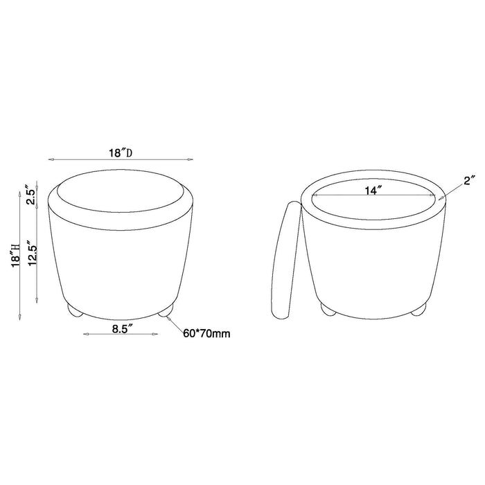 Nestled atop subtle, natural brown rounded wood feet, this round storage ottoman is a stylish statement of comfort and practicality. Upholstered in a soft faux sheepskin, it beckons with tactile appeal, inviting a moment of relaxation. The removable top uncovers a hidden compartment, perfect for stowing away books, throws, or other living essentials. Whether used as a chic accessory, a cozy footrest, or secret storage, this ottoman is a versatile addition to your home decor.